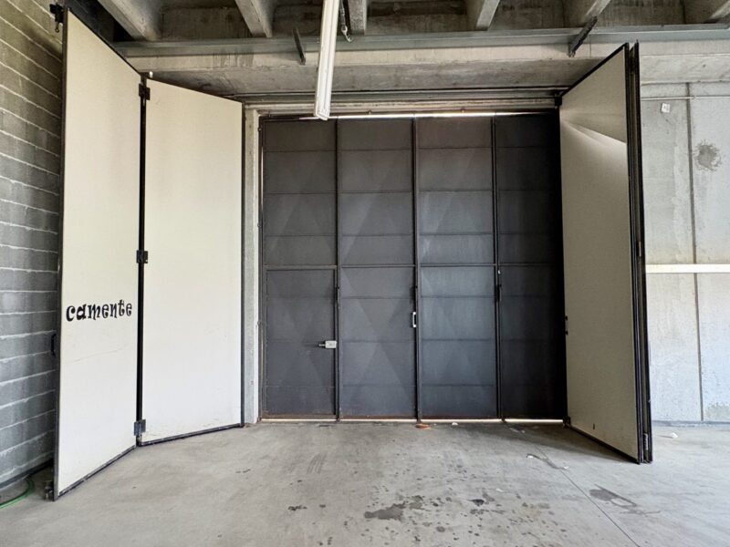ingresso pedonale e carraio con doppi portoni , locale ad uso laboratorio o magazzino ( D/7) e 2 uffici con riscaldamento / raffrescamento e un bagno con antibagno senza barriere architettoniche.