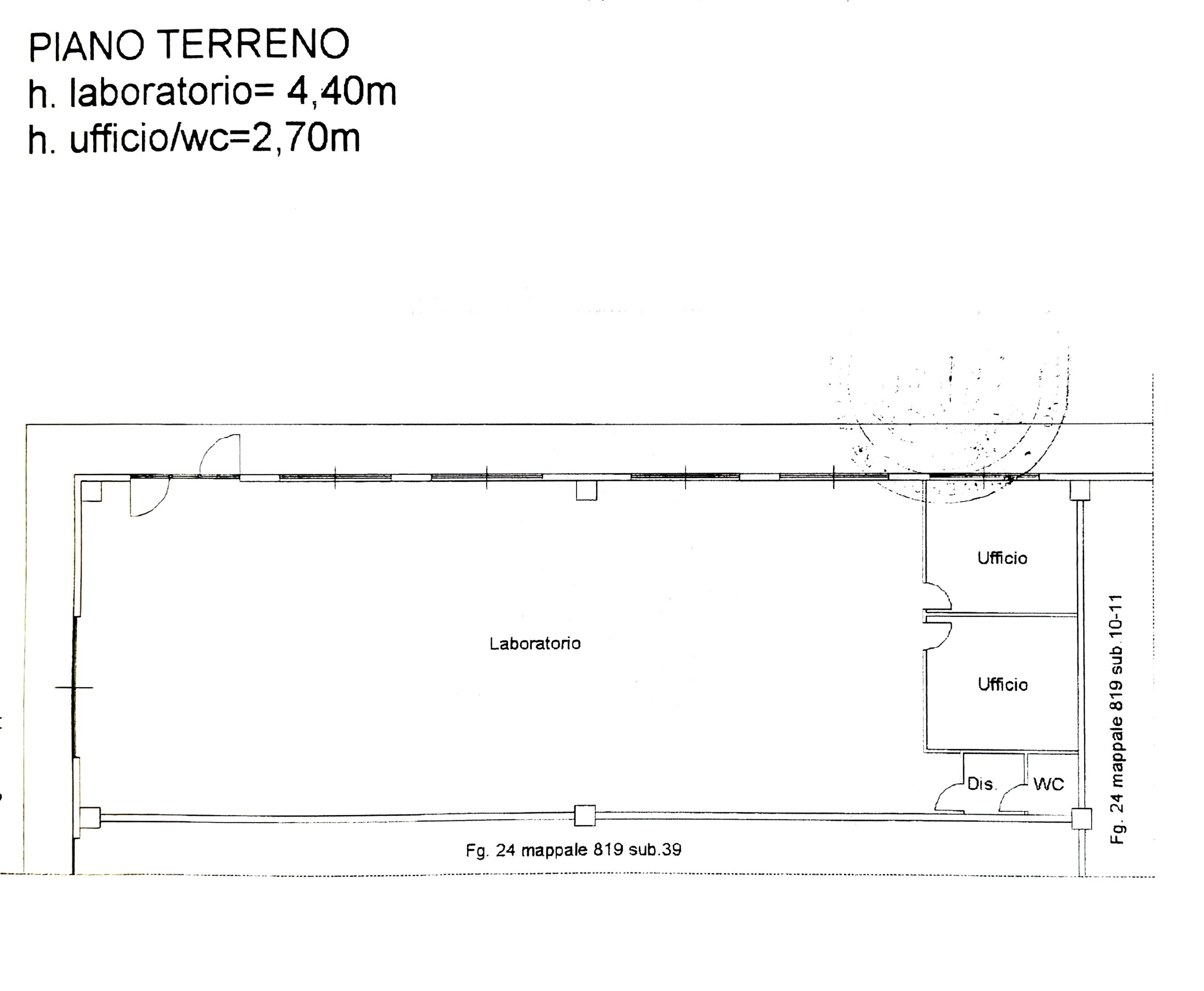 H Laboratorio 4,40 metri ; H Uffici / bagno 2,70 metri